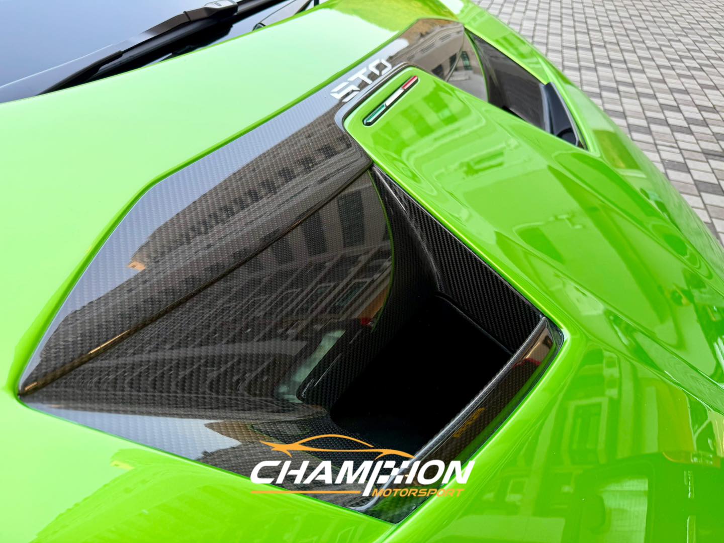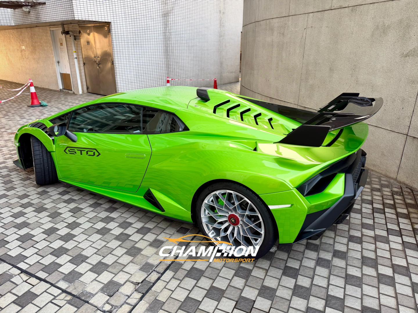 Huracán STO (Super Trofeo Omologata) 傳承了 Huracán Super Trofeo EVO 及 GT3 EVO 賽車的技術,擁有 75% 以上的輕量化碳纖維部件。
